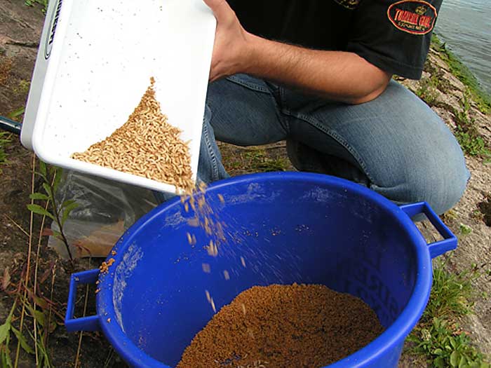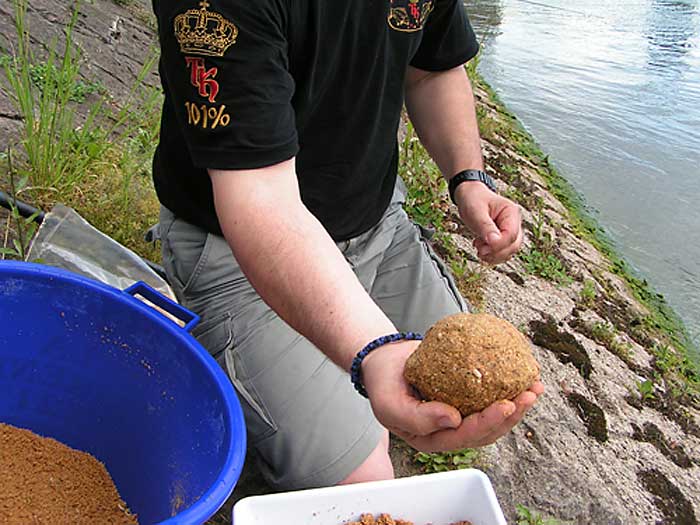 Um das Zerfallen der Futterkugeln an Grund und die gefütterte Stelle noch attraktiver zu machen, haben wir unserer Mischung noch Maden zugegeben. Die Maden bleiben im Kugelinneren bis sie auf dem Grund aufschlagen. Die Maden versuchen nach außen zu kommen, was das Zerfallen der Kugel beschleunigt und gleichzeitig unser Spot attraktiver macht.