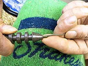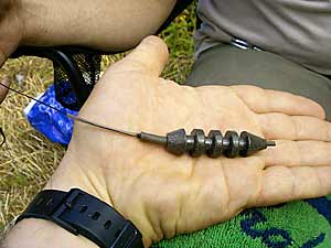 ...und die Wirbel in den Gummischlauch am Ende des Bleies halb rein gezogen (Festbleimontage). |
