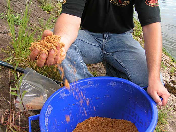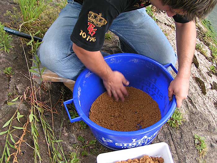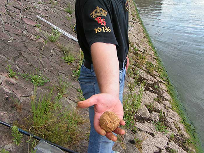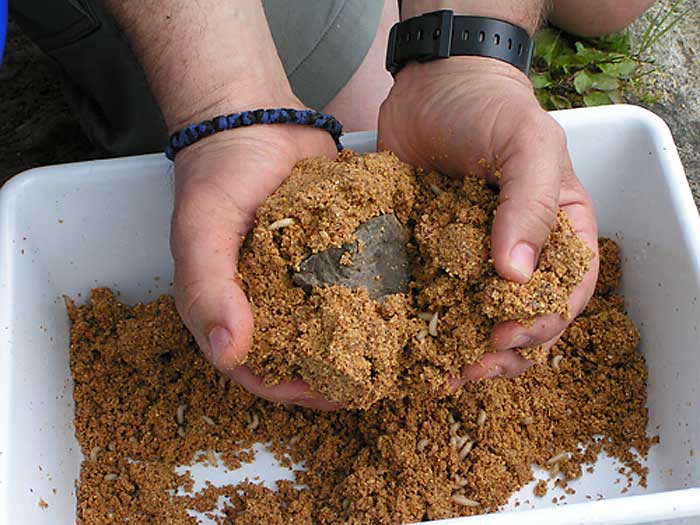 Um das Zerfallen der Futterkugeln an Grund und die gefütterte Stelle noch attraktiver zu machen, haben wir unserer Mischung noch Maden zugegeben. Die Maden bleiben im Kugelinneren bis sie auf dem Grund aufschlagen. Die Maden versuchen nach außen zu kommen, was das Zerfallen der Kugel beschleunigt und gleichzeitig unser Spot attraktiver macht.