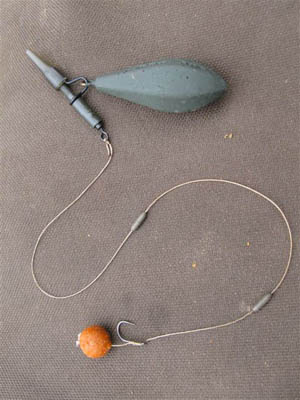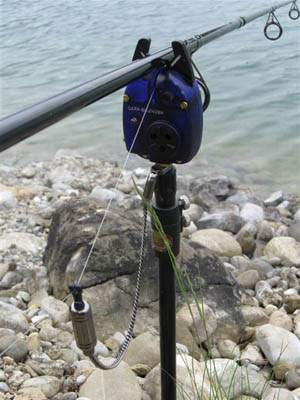 hatten ja noch keine Rollen! Von unserem Taschengeld kauften wir uns zwei Penn Live Liner. Da wir immer Papas Delkims benutzten und er da überhaupt nicht begeistert war, haben wir uns auf der Messe in Bad Saulgau vier Carp Sounders gekauft. Als Hauptschnur verwenden wir normalerweise immer eine 0,35er Monofile Angelschnur. Welche Bleie wir verwenden hängt vom Gewässergrund ab. Auf schlammigem Grund nehmen wir leichte Bleie in Verbindung mit Safety Clips. Auf hartem Grund 80g Inline Bleie. Das Vorfachmaterial passen wir ebenfalls dem Gewässergrund an. Auf hartem Grund nehmen wir beschichtetes Material und bei Schlamm weiches Geflecht. Die Vorfachlänge hängt von der Futtertaktik ab. Je größer der Futterplatz desto länger das Vorfach!
